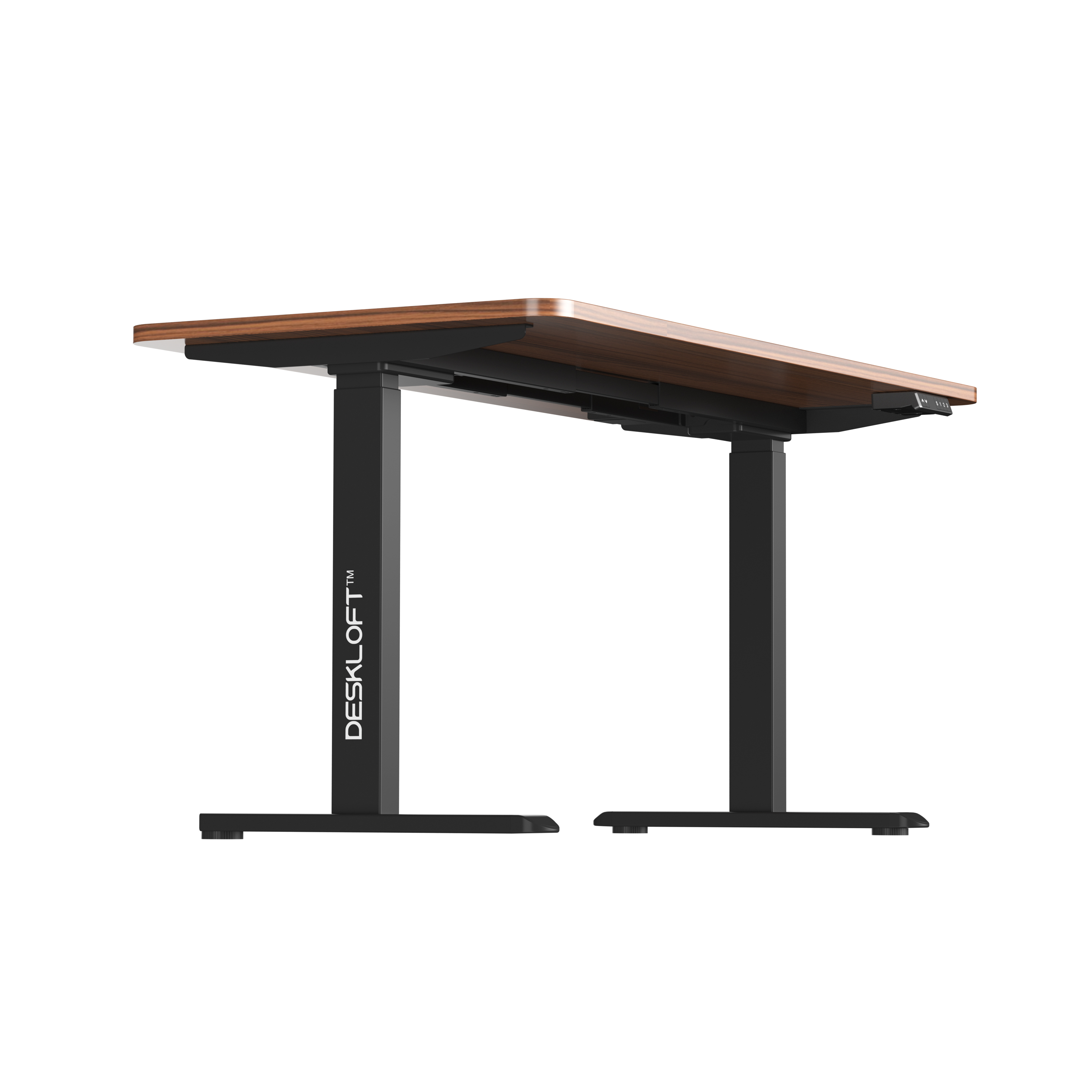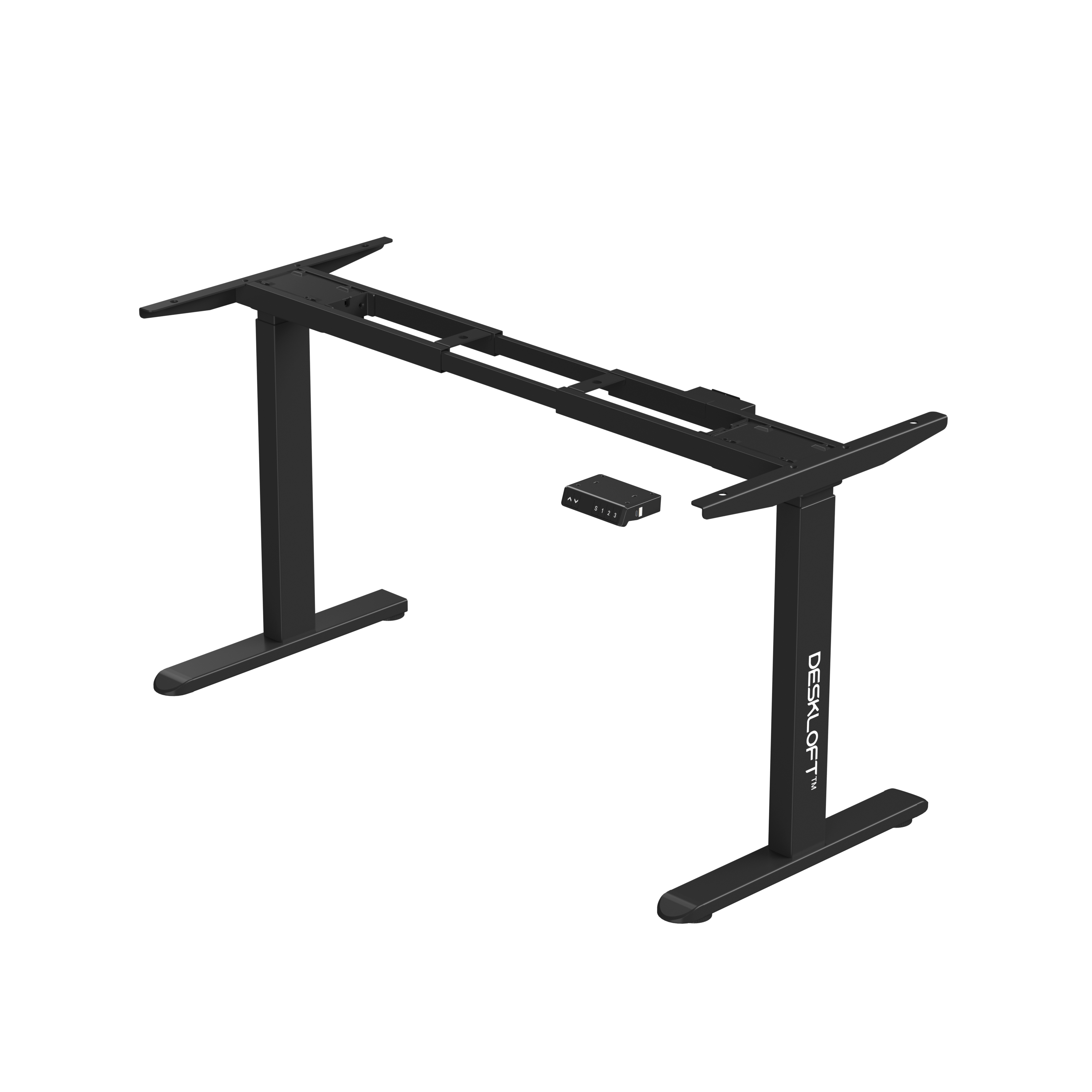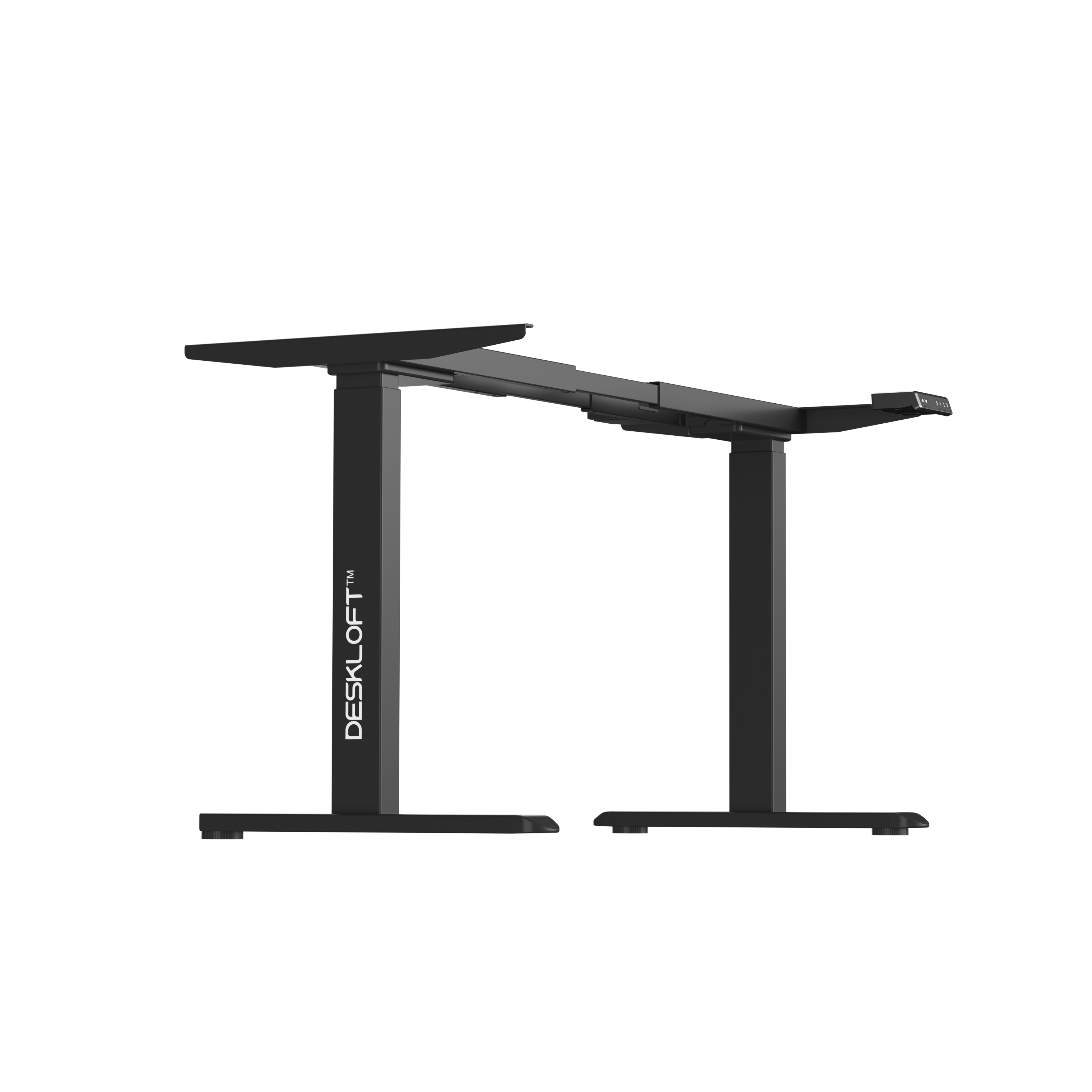 Two motors drive both legs together, so the rise tracks straight. The two-beam column tightens side play and the 600 mm feet anchor the stance. At full height, keys feel crisp and the screen stays still. Save sit and stand once on the keypad, then tap to return—no guessing, no nudging. Rear-edge cable routes keep lines out of the way during lift.